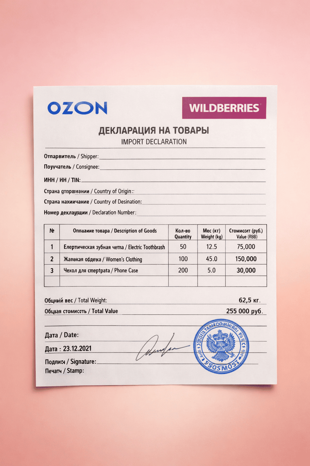 Декларация товаров для маркетплейсов Ozon и Wildberries (WB) — это документ, подтверждающий, что товар безопасен и соответствует требованиям технических регламентов или национальных стандартов. Необходимость декларации зависит от категории товара и требований законодательства.